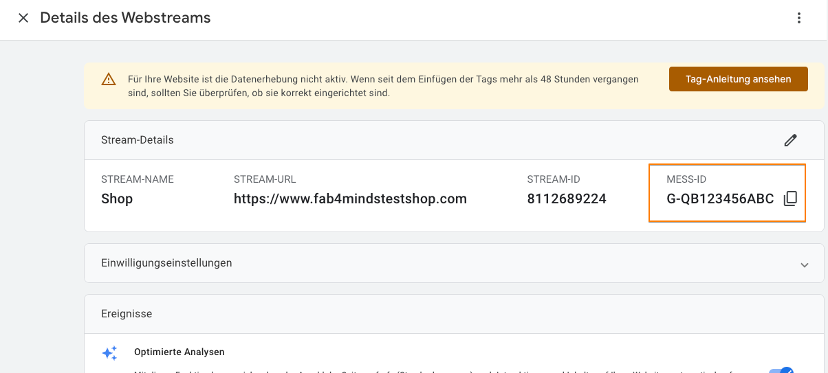 - Mess-ID: Die ID vom Analytics(/GA4)-Konto