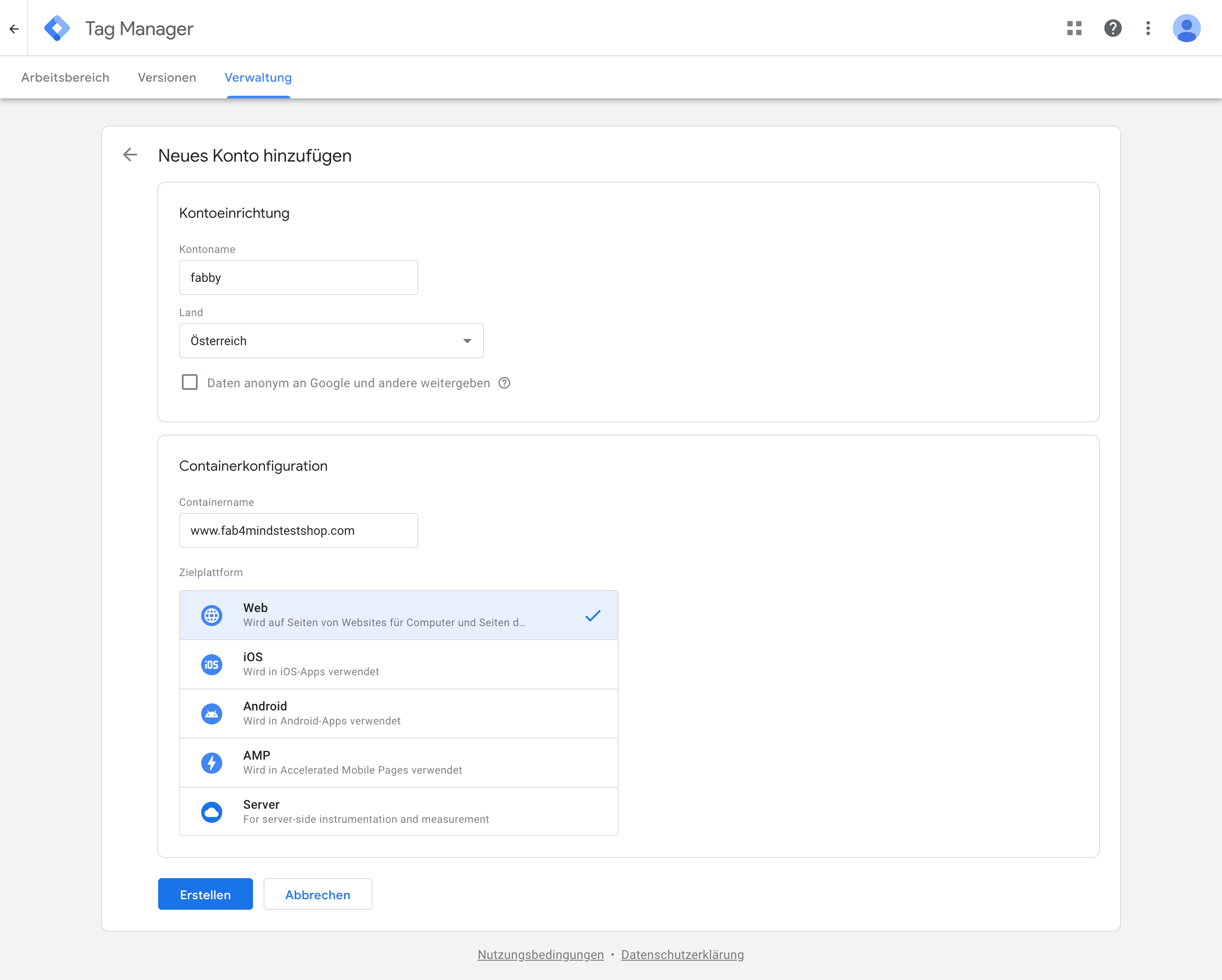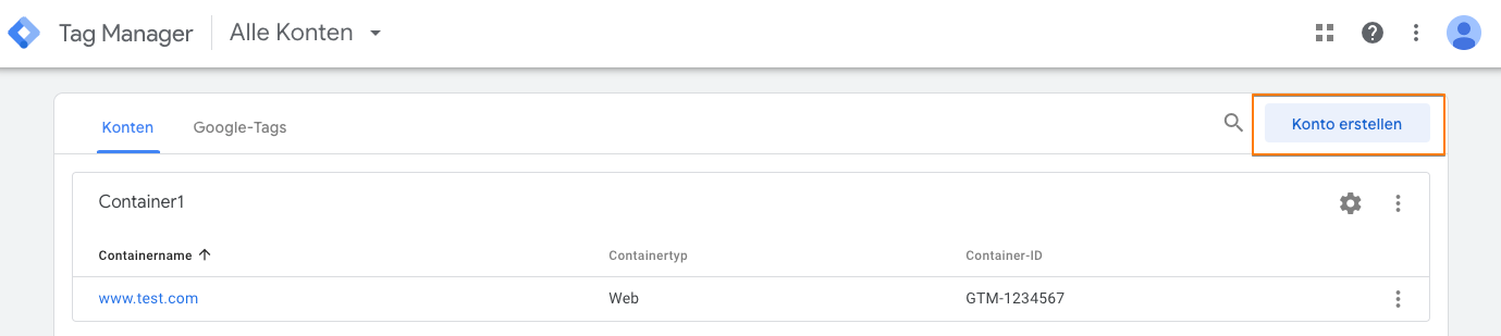 Zuerst wird unter https://tagmanager.google.com/ ein Tag Manager Container erstellt.