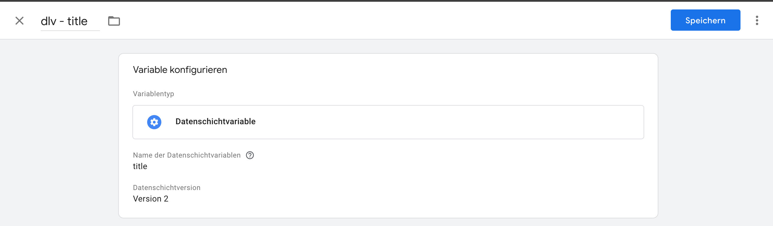 - Anlage von “Datenschichtvariable” mit Namen “title”