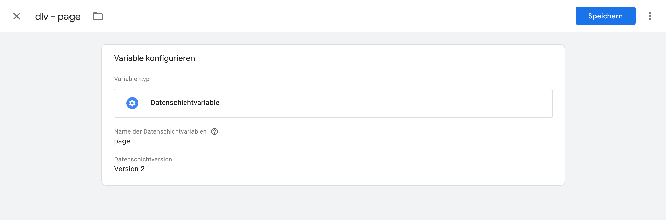 - Anlage einer “Datenschichtvariable” mit Namen “page”