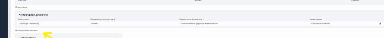 An dieser Stelle kann auch über die Excel Export Funktion der Kontenrahmen exportiert werden. Die hier angeführte Gliederung kann unter dem Konto durch das neue Anlegen und hinzufügen von Kontogruppen verändert, gesetzt werden: