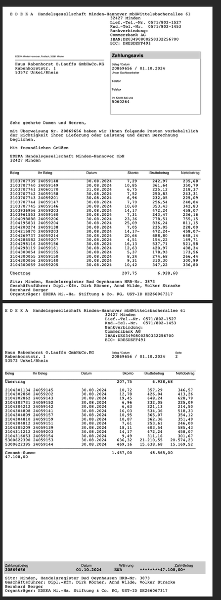 Ein automatisiertes Einlesen der Buchungen aus dem PDF ist aus aktueller Sicht nicht möglich. Im nächsten Jahr kann hierfür eventuell eine X-Rechnung oder eine REMADV angefordert werden um eine OP - Auflösung zu ermöglichen.