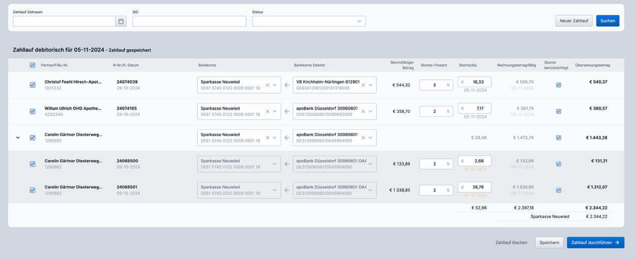 Für den Testfall wird ein neuer debitorischer Zahllauf durchgeführt: