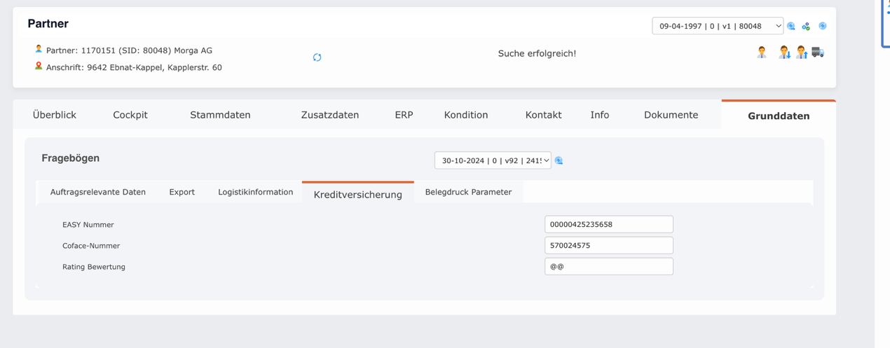 Hier werden beispielsweise die Versicherungsdaten hinterlegt: