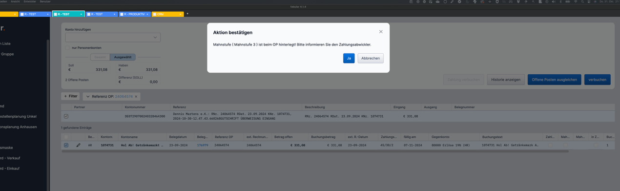 Durch „Buchen“ wird folglich der Buchungsstapel festgeschrieben, neue OPs gebildet bzw. vorhandene OPs ausgeglichen.