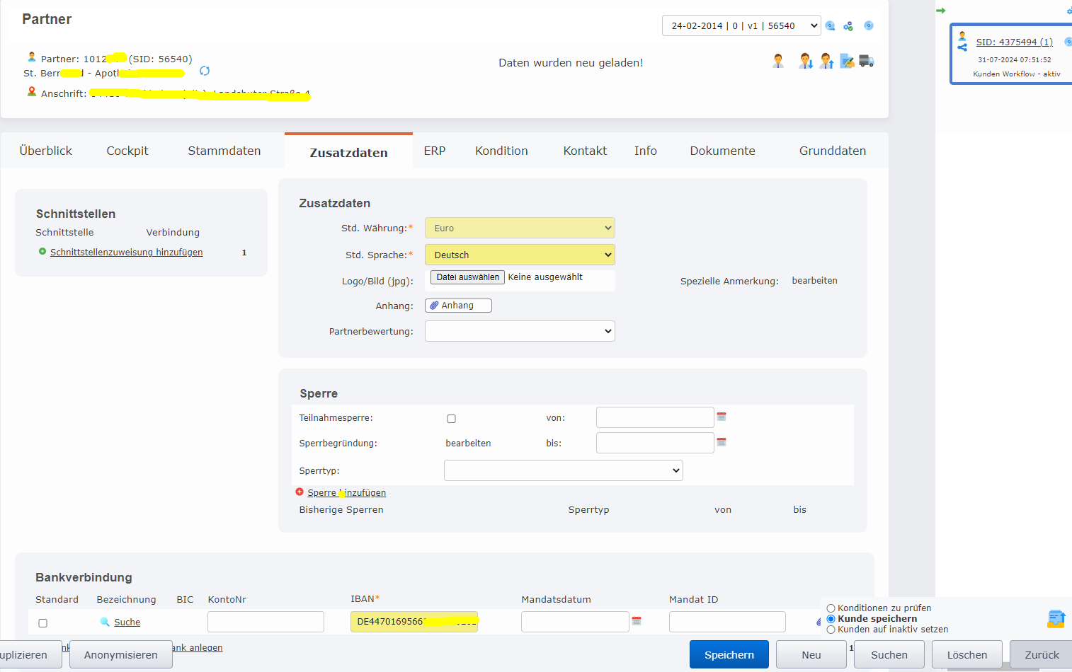 Sobald über die Funktion "Bankbuchungen" eine Zahlung verbucht wurde, werden beim ausgewählten Geschäftspartner (kommt direkt aus dem offenen Posten) die Bankverbindung aktualisiert.