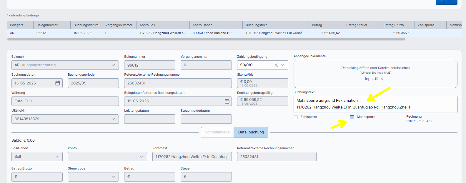 Nachdem die REMADV wie im Screenshot ersichtlich aufgelöst wurde, ist keine weitere manuelle Bearbeitung mehr erforderlich.