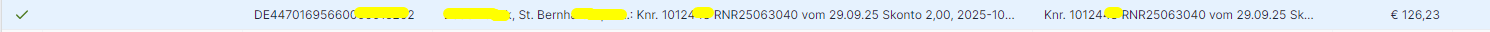 Diese Option wird angezeigt, wenn der Betrag mit und ohne Skonto nicht vollständig passend ist, die Logik aber trotzdem eine Zuordnung zu einem Beleg herstellen konnte. In diesem Fall kann es sich um eine Teilzahlung, etc. handeln.