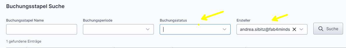 Die Buchungsstapelsuche per Lupe bei "Buchungsstapel Name" öffnen