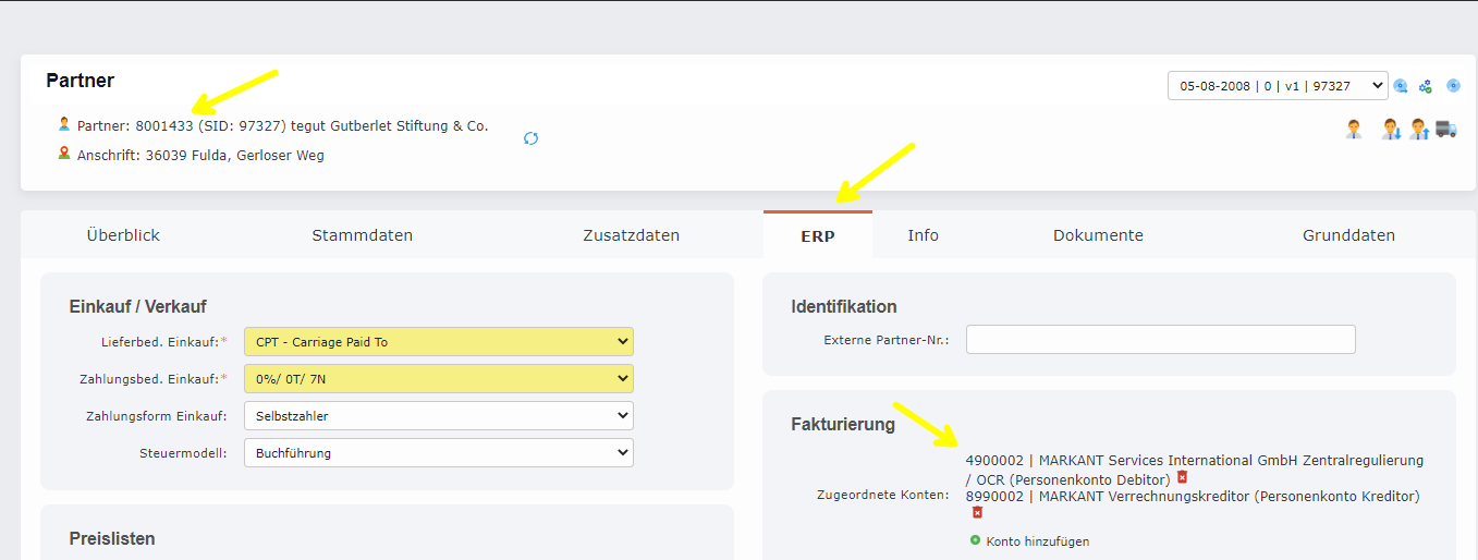 Konto - Partnerverknüpfung / Partnerstammdaten