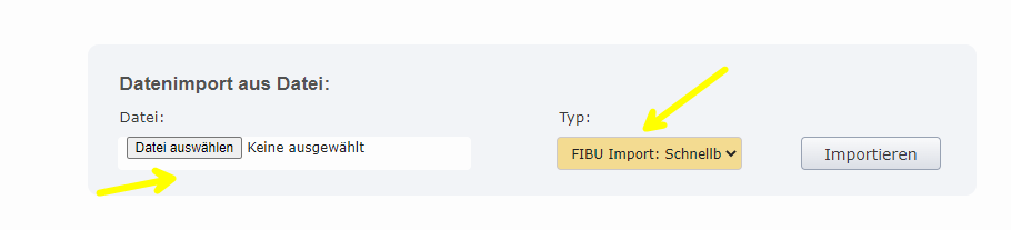 Hier muss nun der richtige Typ ausgewählt werden. Mit Datei auswählen kann die gespeicherte Datei hochgeladen werden
