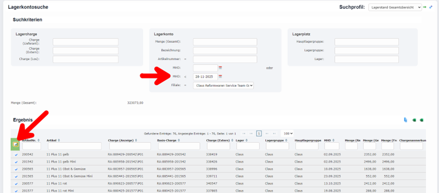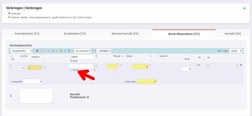 Bei den Positionen können über die Chargensuche die entsprechenden Chargen ausgewählt werden.