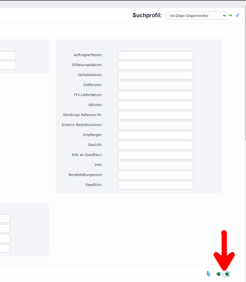 Der Dispo-Plan zeigt eine Übersicht aller offenen Dispositionen. Um den Dispo-Plan zu öffnen, muss der Menüpunkt „VK-Disposition“ ausgewählt und das Suchprofil „VK-Dispo Dispomonitor“ ausgewählt werden.