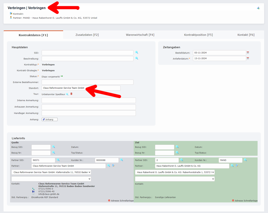 Wird ein Auftrag eingegeben, wird dieser automatisch an Klinkware übergeben. Dies kann man daran erkennen, dass der Status der Disposition „Klinkware übertragen“ ist.