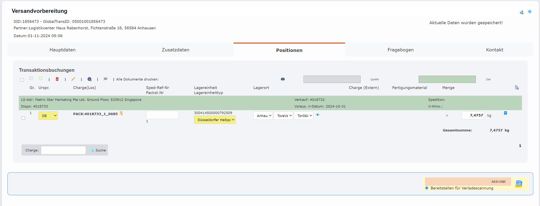 Dieser Schritt wird hier nicht weiter erläutert und kann in diesem Abschnitt eingelesen werden [Zur Verladescannung]