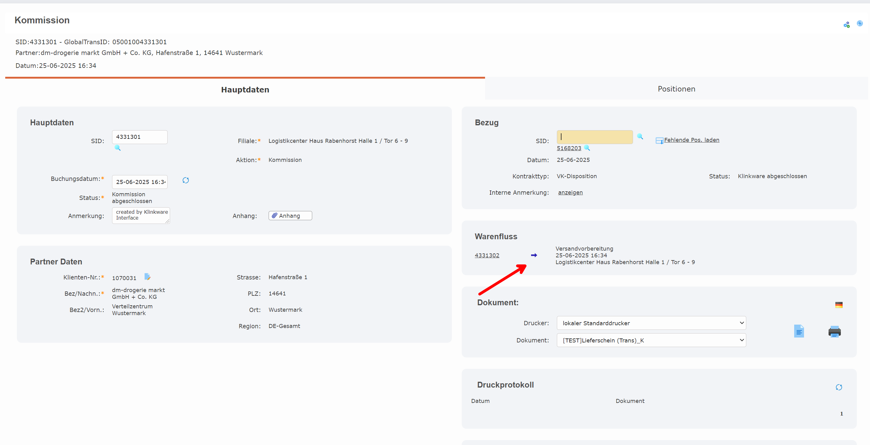 Damit eine Kommission gebucht werden kann, muss es davor einen Verkauf bzw. eine Disposition geben. Diese Dispositionen entscheiden, wie der Kommissionierungsworkflow abgearbeitet wird und welche Schnittstellen zu Drittanbietern (z.B.: DHL/Klinkware) angestoßen werden müssen.