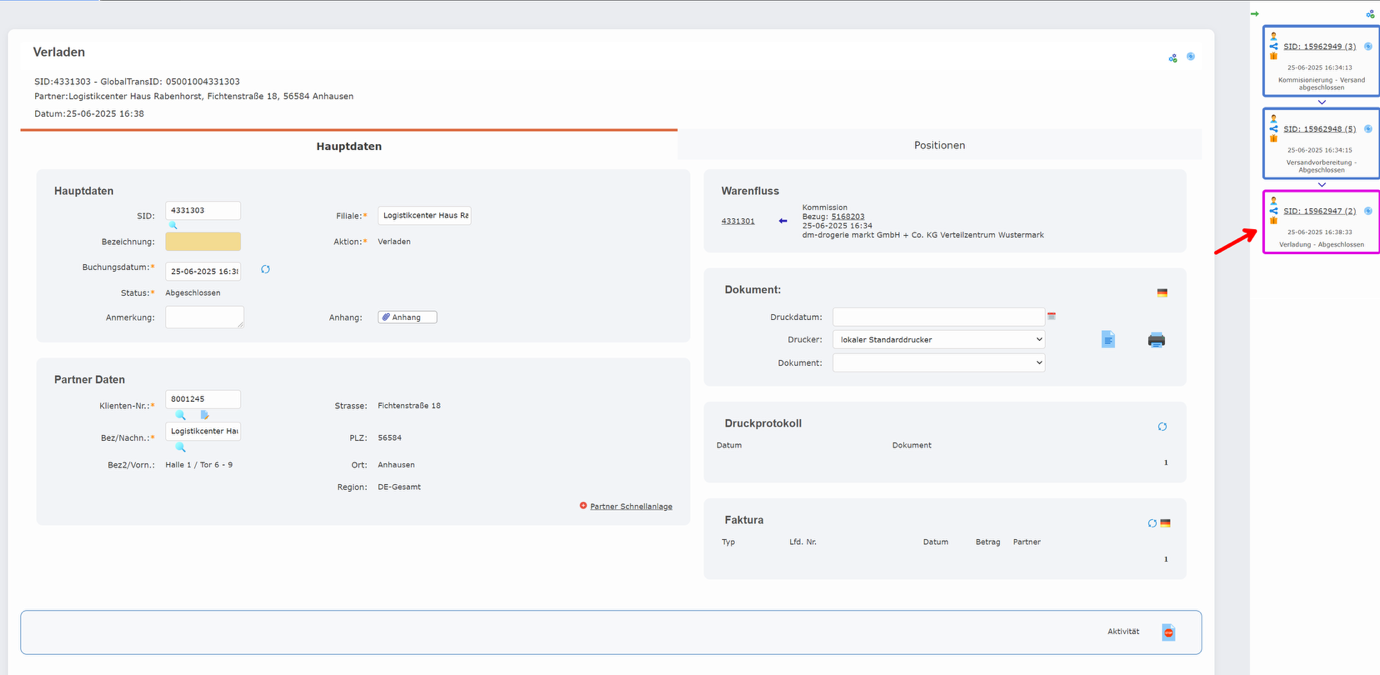 Wenn dies der Fall ist, wird automatisch im Hintergrund der Eingang oder Ausgang von Paletten gebucht.