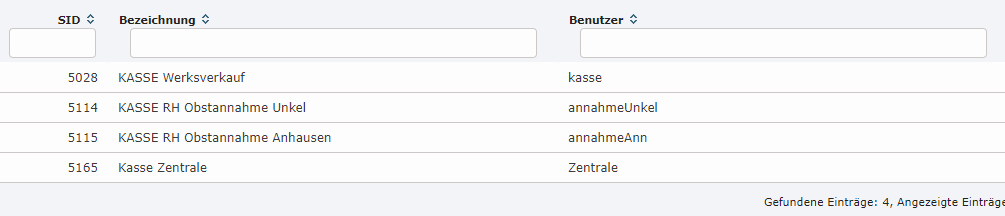 Jede dieser Kassen hat die jeweilige Filiale zugeordnet.