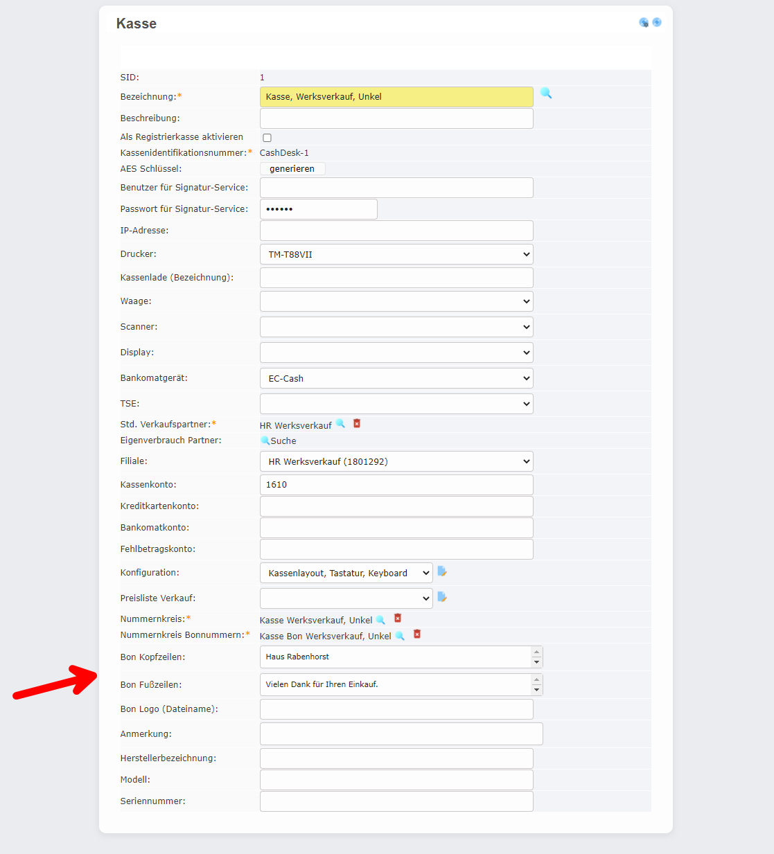 Die Zuordnung erfolgt in der Kassenverwaltung: