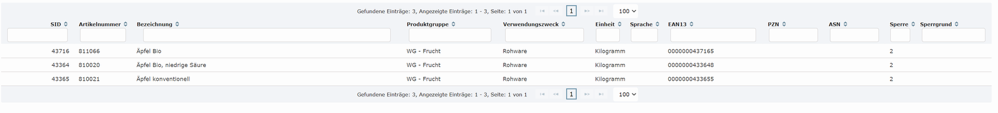 Nun reicht ein Klick auf den Button „Äpfel konventionell“, da dort der EAN Code des jeweiligen Artikels hinterlegt ist und die Äpfel sind mit Menge -100 im System.