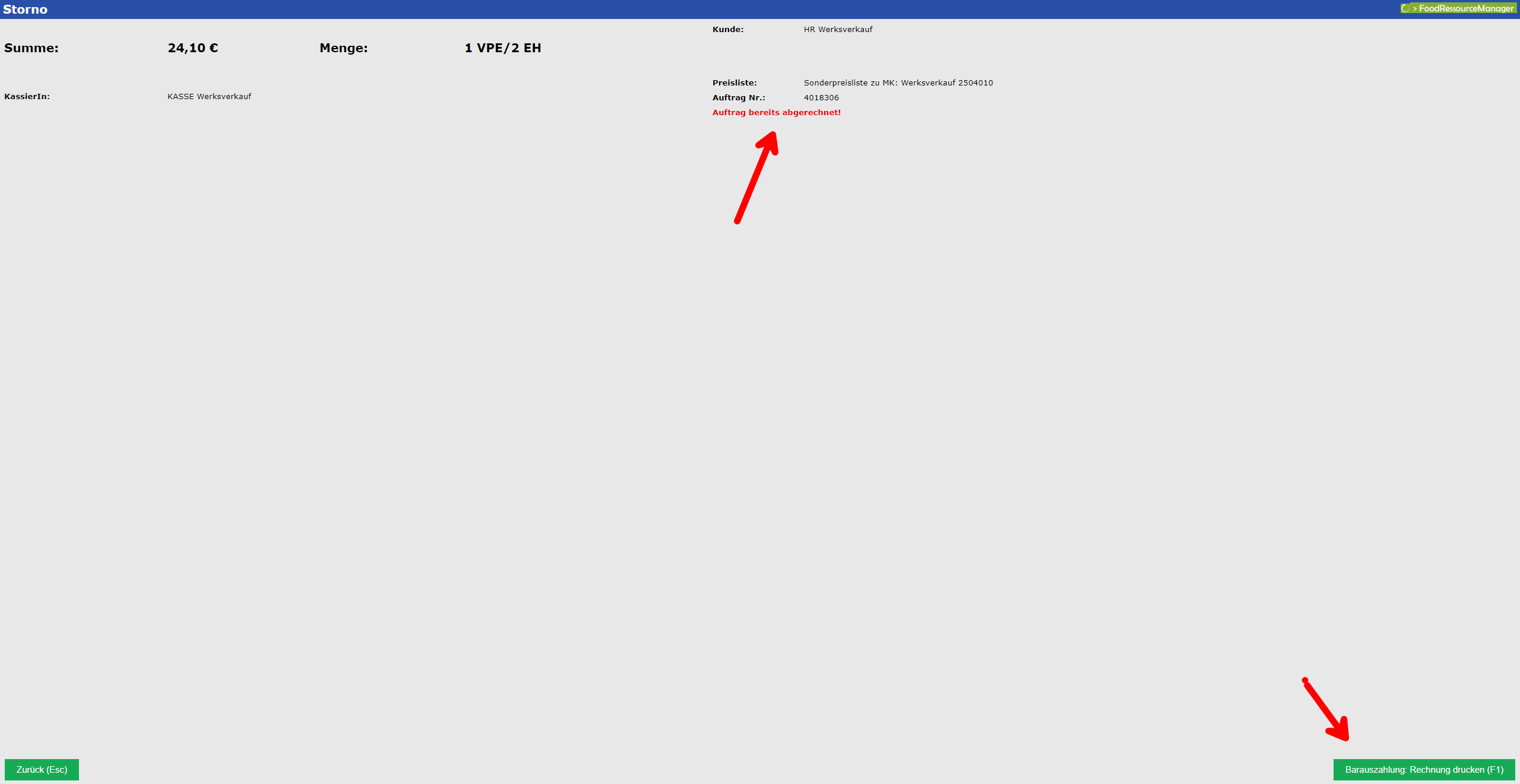 - Auflösung des OPs gegen die Kasse (Barverkauf)