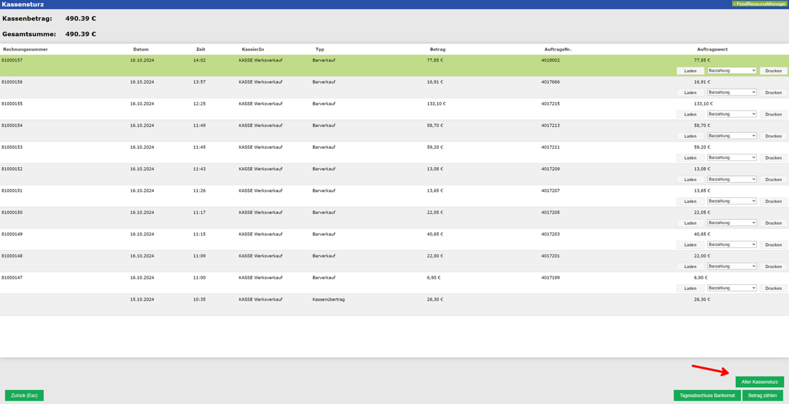 Geschlossene Kassenstürze kann man in der Kassensturzübersicht auch wieder aufrufen.