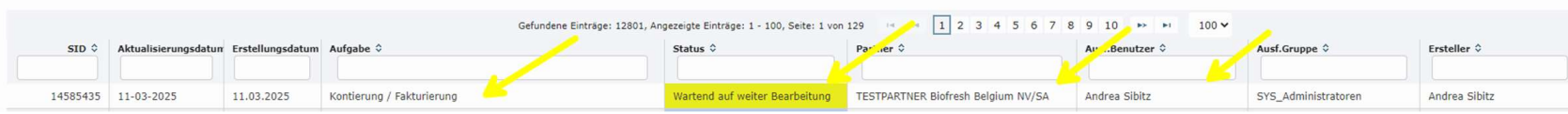 Sobald ein Fakturierungsauftrag erstellt wurde wird dieser mit dem zugehörigem