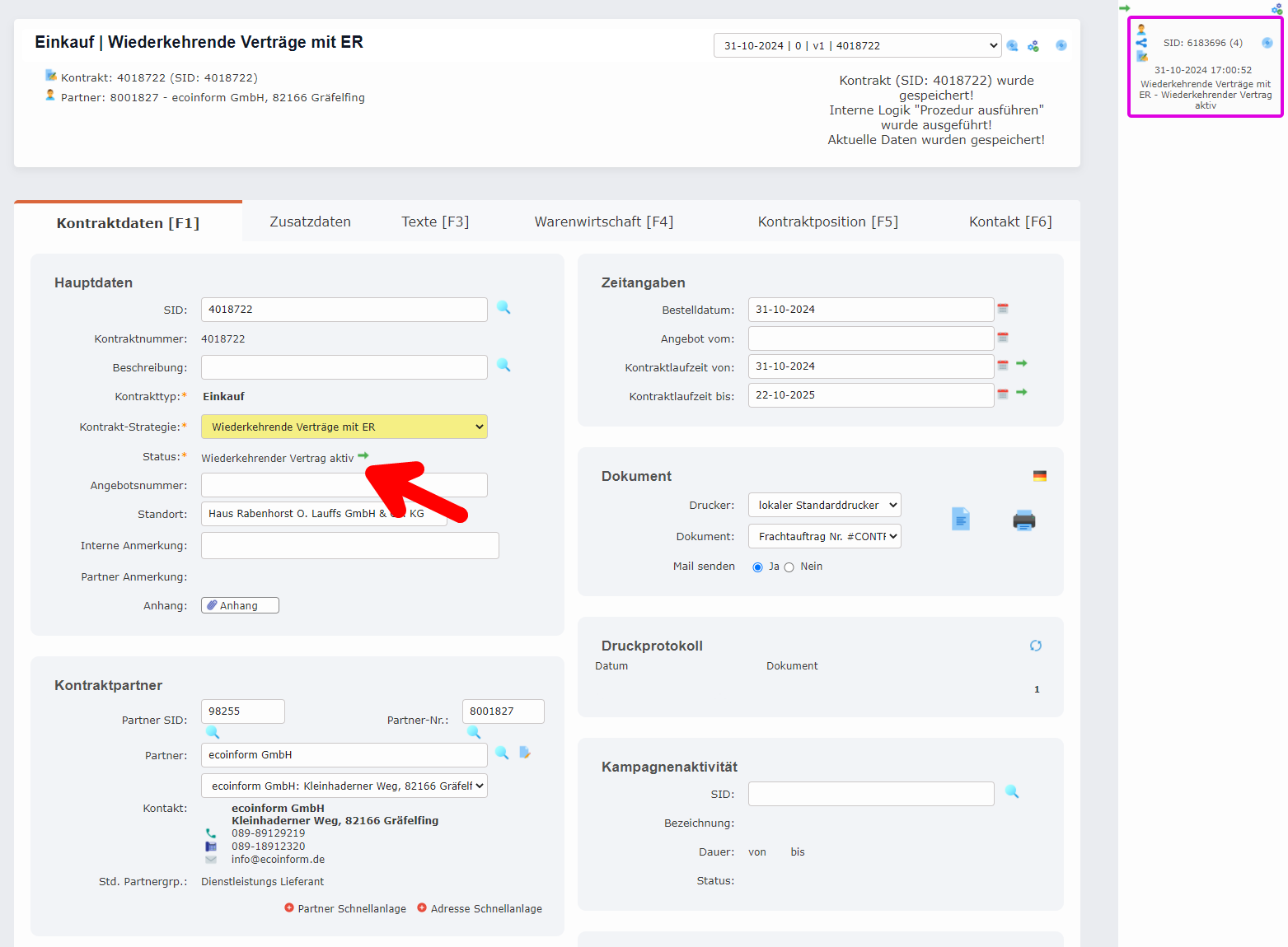 Einkauf - wiederkehrende Verträge mit/ohne ER anlegen inkl. Budgetprüfung und Freigabe