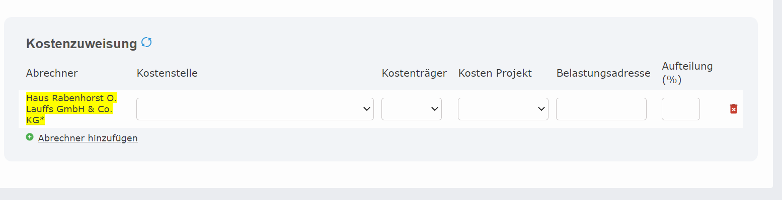Hier kann man auch eine kontraktspezifische Kostenzuweisung in Prozent eingegeben werden, welche Kosten entsprechend aufteilt.