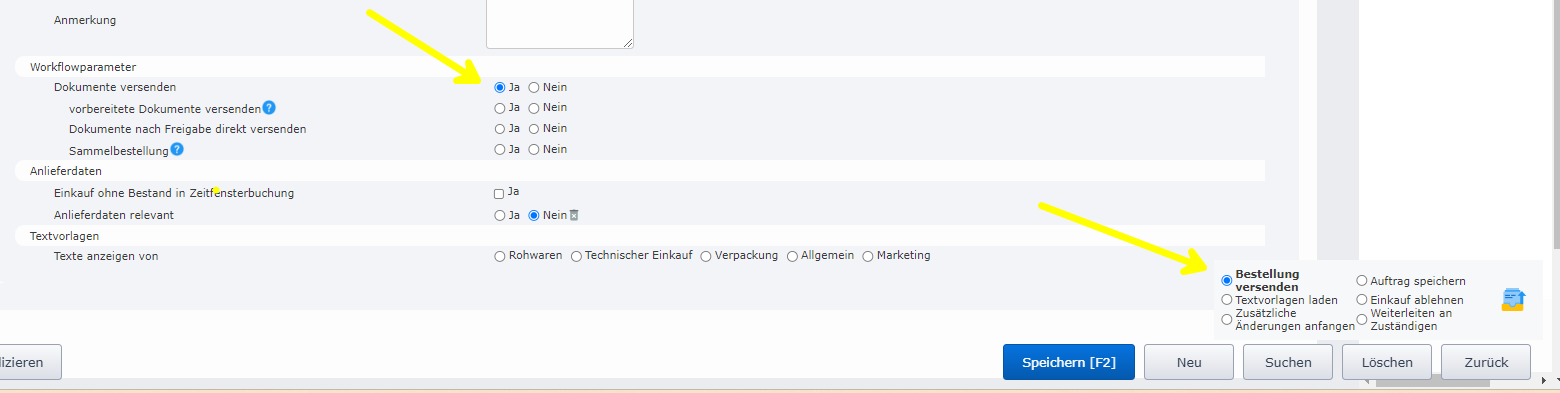 Aufgrund der Einstellungen im Reiter "Zusatzdaten" kann nach erfolgreicher Freigabe die Bestellung versendet oder eben ohne Bestellversand fortgefahren werden.