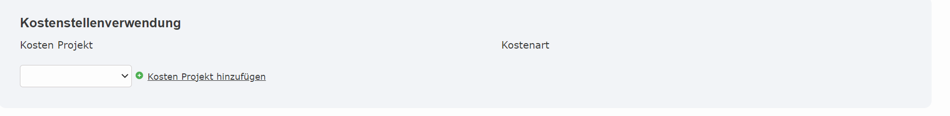 Kostenprojekt – die zur Auswahl verfügbaren Kostenprojekte werden aktuell abhängig von der Kostenstelle aus dem Budget bzw der Kostenstellenzuordnung direkt in der KSt geladen. Es kann also nur ein Kostenprojekt ausgewählt werden, welches auch im Budget unter der zu bebuchenden Kostenstelle angegeben ist. Ist das Kostenprojekt nicht relevant muss dieses auch nicht ausgewählt werden. Das System bucht in diesem Fall automatisch auf „keine Projektzuordnung“.