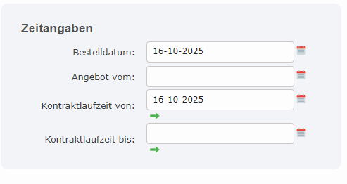 Mit den grünen Pfeilen kann dieses Datum in die entsprechenden Felder (Gültig von / Gültig bis) in den Vertragspositionen übernommen werden.