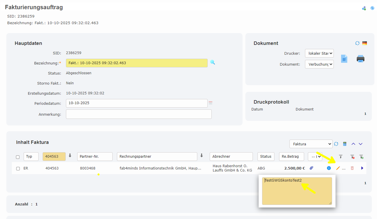 Beschreibung - dieses Feld wird für den Buchungstext der Rechnung verwendet und sollte immer befüllt sein.