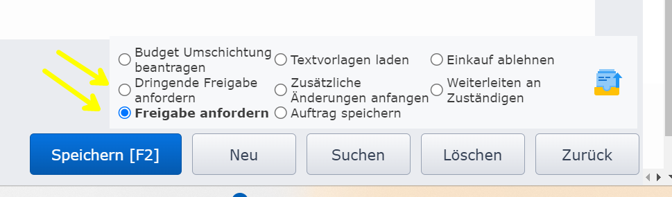 Freigabe anfordern (im Reiter Zusatzdaten)