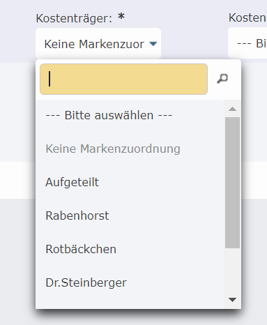 Die verfügbaren Kostenstellen werden vom jeweiligen Mitarbeiter geladen wobei hier unterschieden wird ob die Kostenstelle nur Kontiert oder vollständig eingesehen werden darf.
