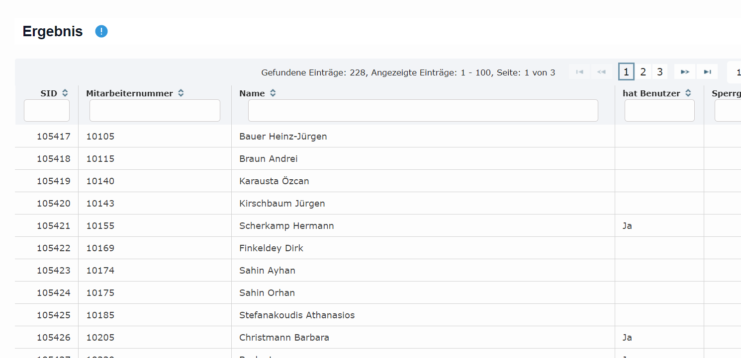 Wichtig hier nur User auswählen, welche bei der Spalte "Hat Benutzer" ein Ja angezeigt wird.