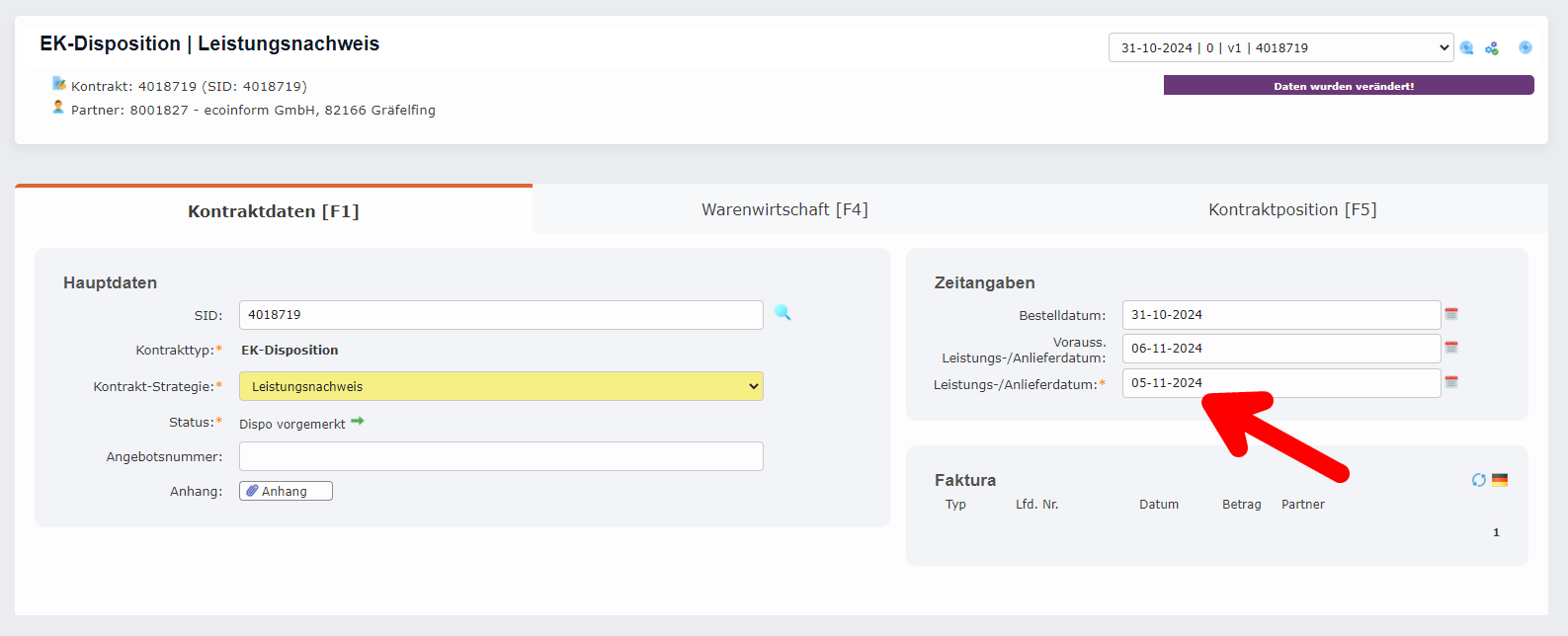 HINWEIS: Das Bis Feld beim Leistungsdatum ist somit für die Budgetprüfung relevant.