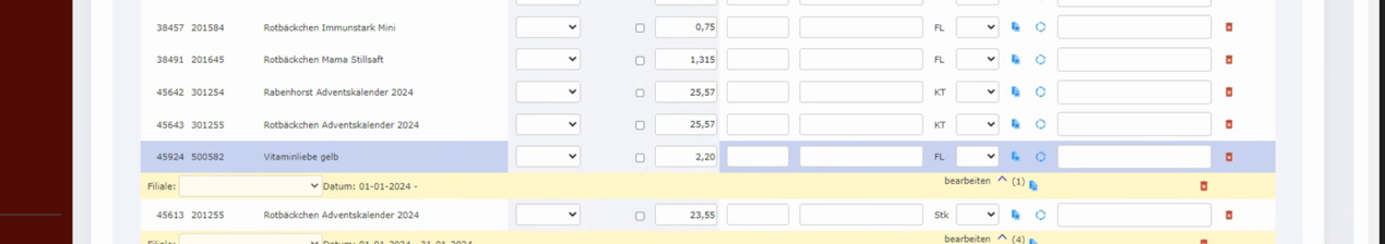 Werden mehrere Positionen angezeigt, dann müssen nur die grünen bestätigt werden. Die anders farbigen Position werden somit direkt bestätigt: