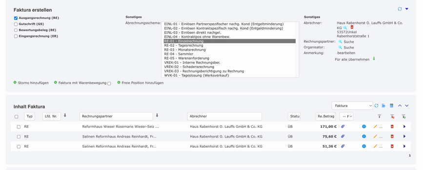 Die Einzelrechnungen werden im täglichen Fakturalauf automatisch generiert.