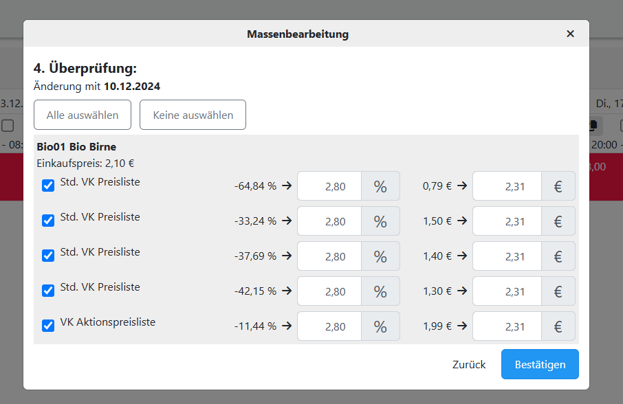 Bei der Massenbearbeitung ist es möglich die Artikelnummer anzuzeigen. -