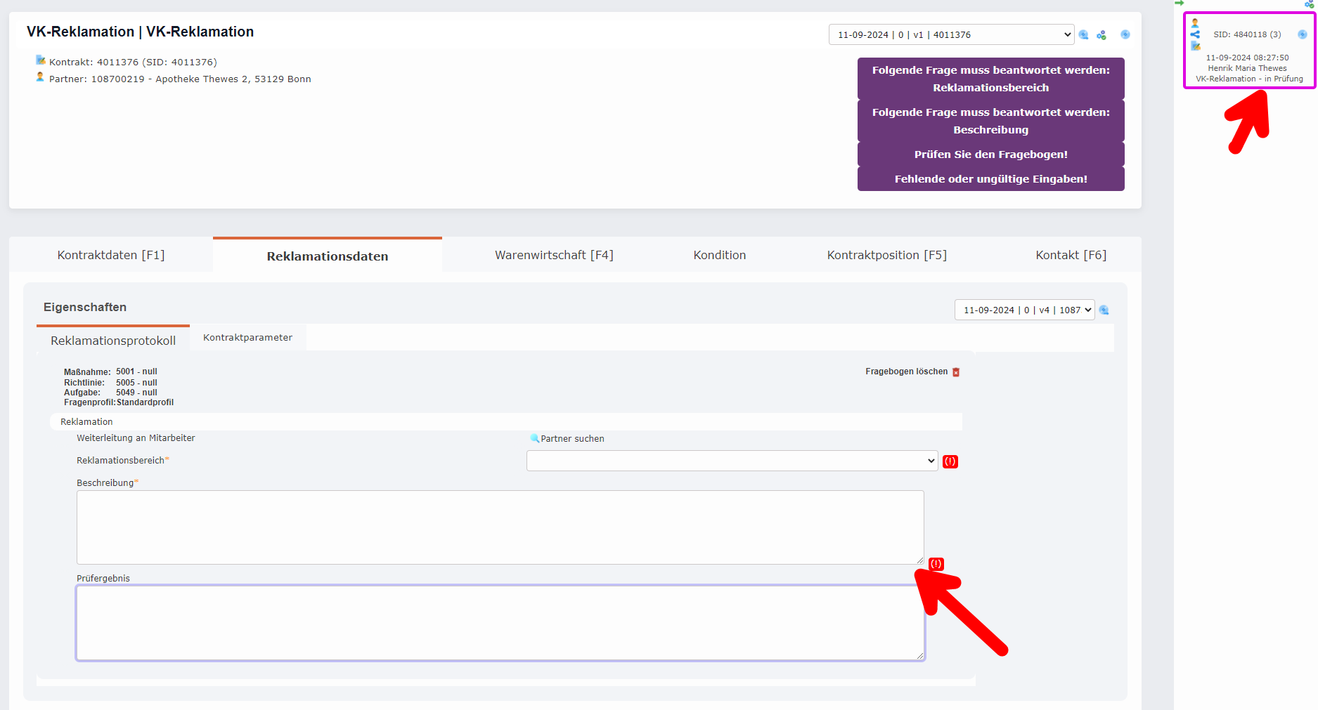 Es ist möglich, dass die Ablauffolge 'Reklamationsgründe eingetragen' nur dann ausgeführt werden kann, wenn die Gründe auch eingetragen sind, damit dies nicht vergessen werden kann.