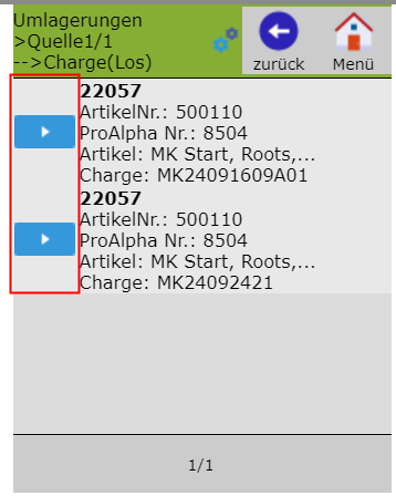 Hintergrund: Die Chargen müssen angescannt werden und dürfen nicht über das Pocket-Menü ausgewählt werden.
