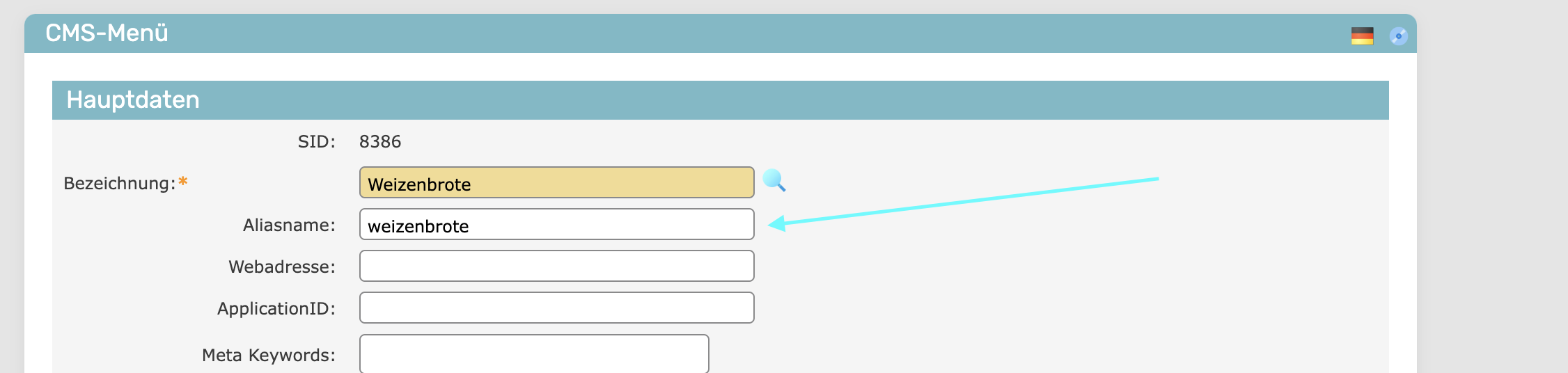 Im CMS-Menü soll es wie bei der Bezeichnung auch neben dem Aliasnamen eine Such-Lupe geben, da der aliasname aktuell immer eindeutig sein muss und somit garantiert zum Treffer führt.