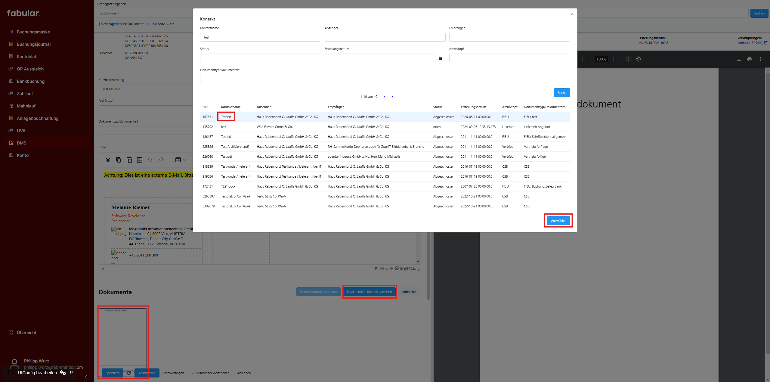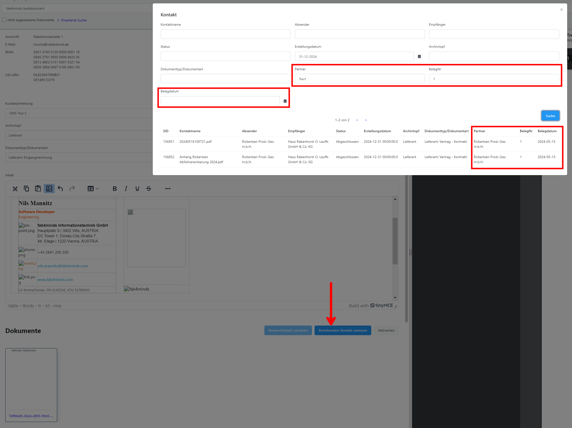 Im DMS soll es die Möglichkeit geben, einzelne Dokumente einem bestehenden Kontakt zuzuordnen (mehrere Kontakte miteinander zu verknüpfen).