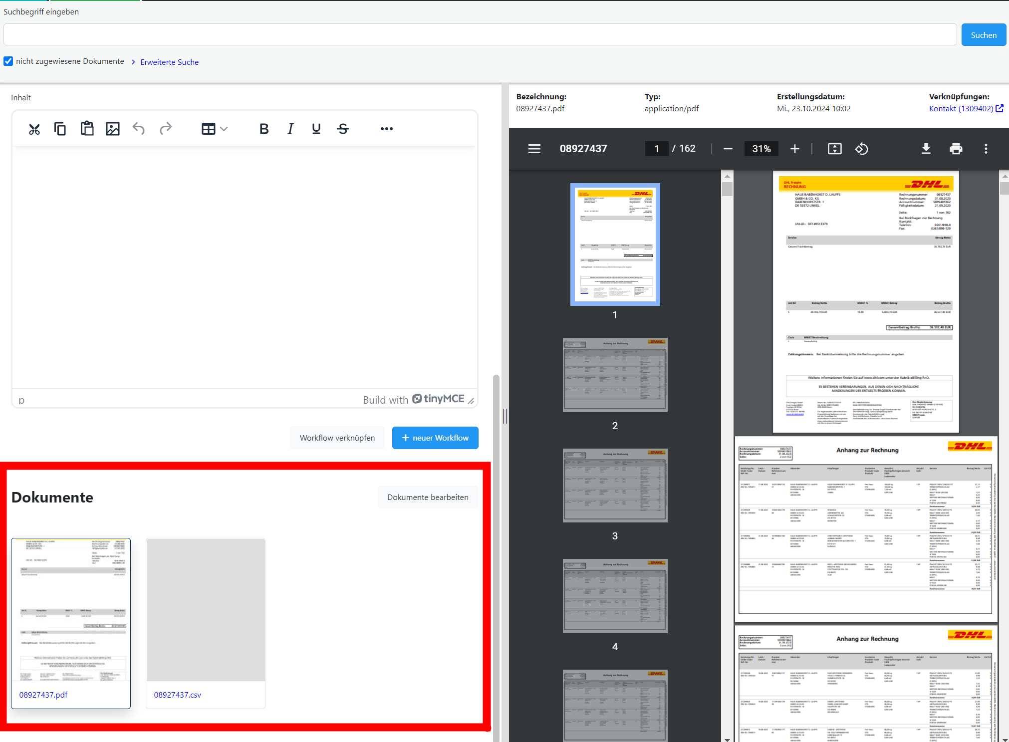 Aktuell werden mehrere Dokumente aus der selben Mail bereits verknüpft. Das sieht dann so aus: