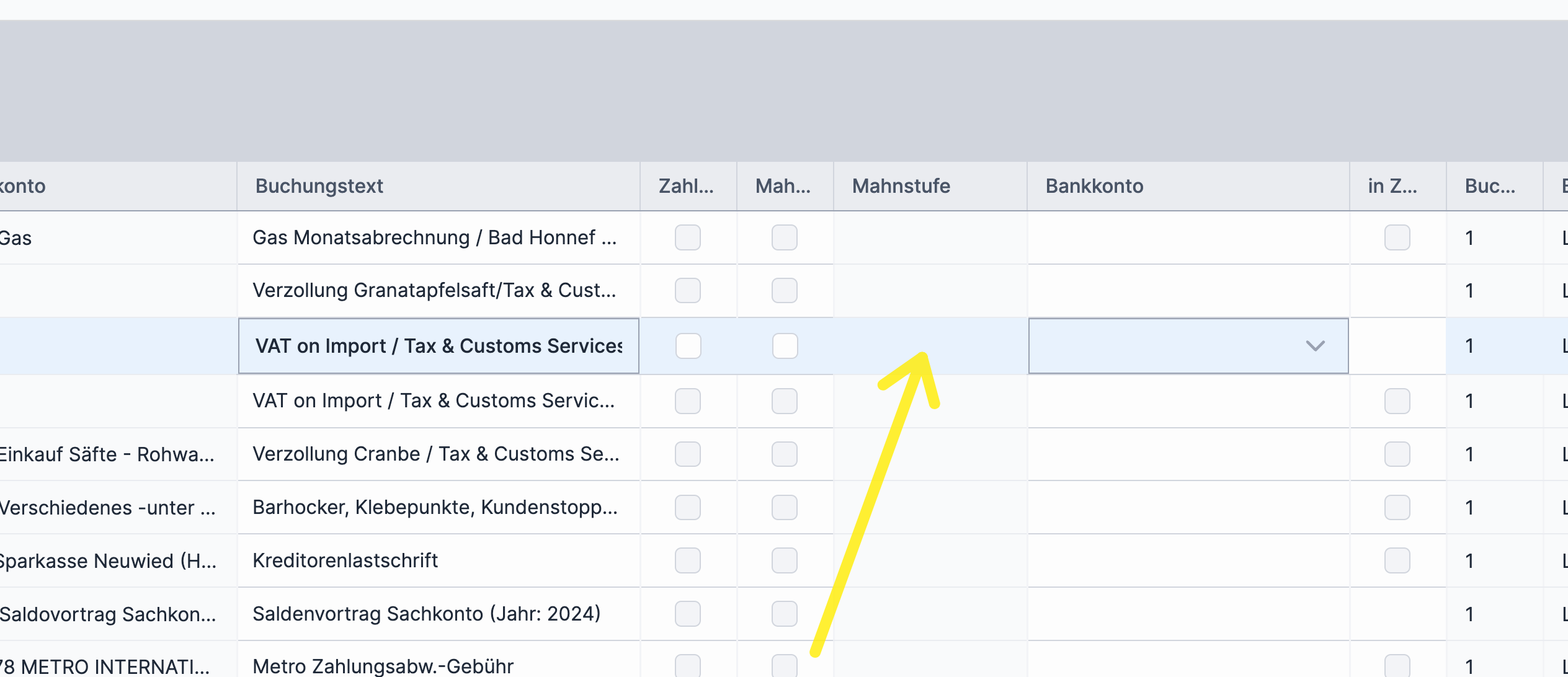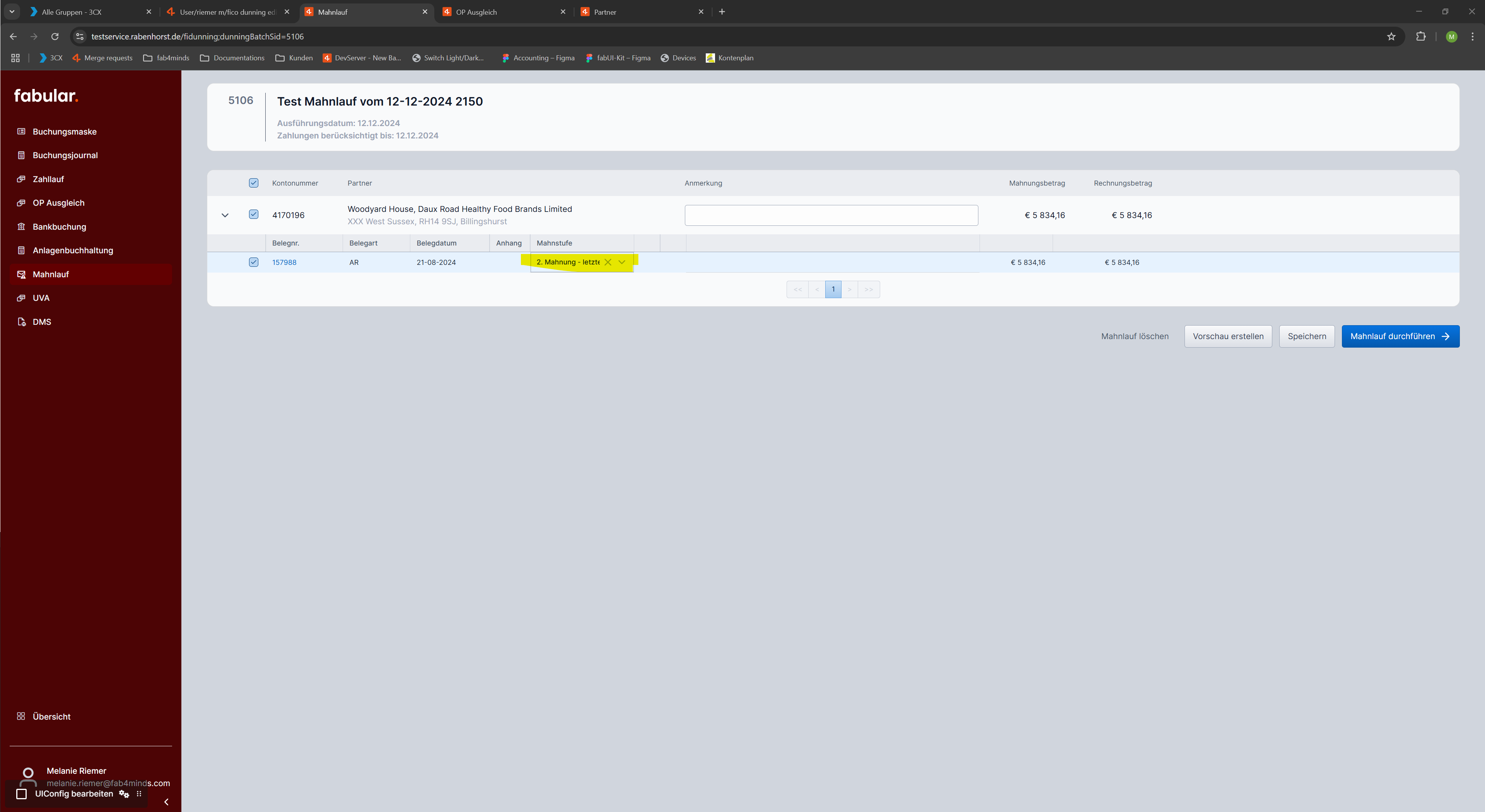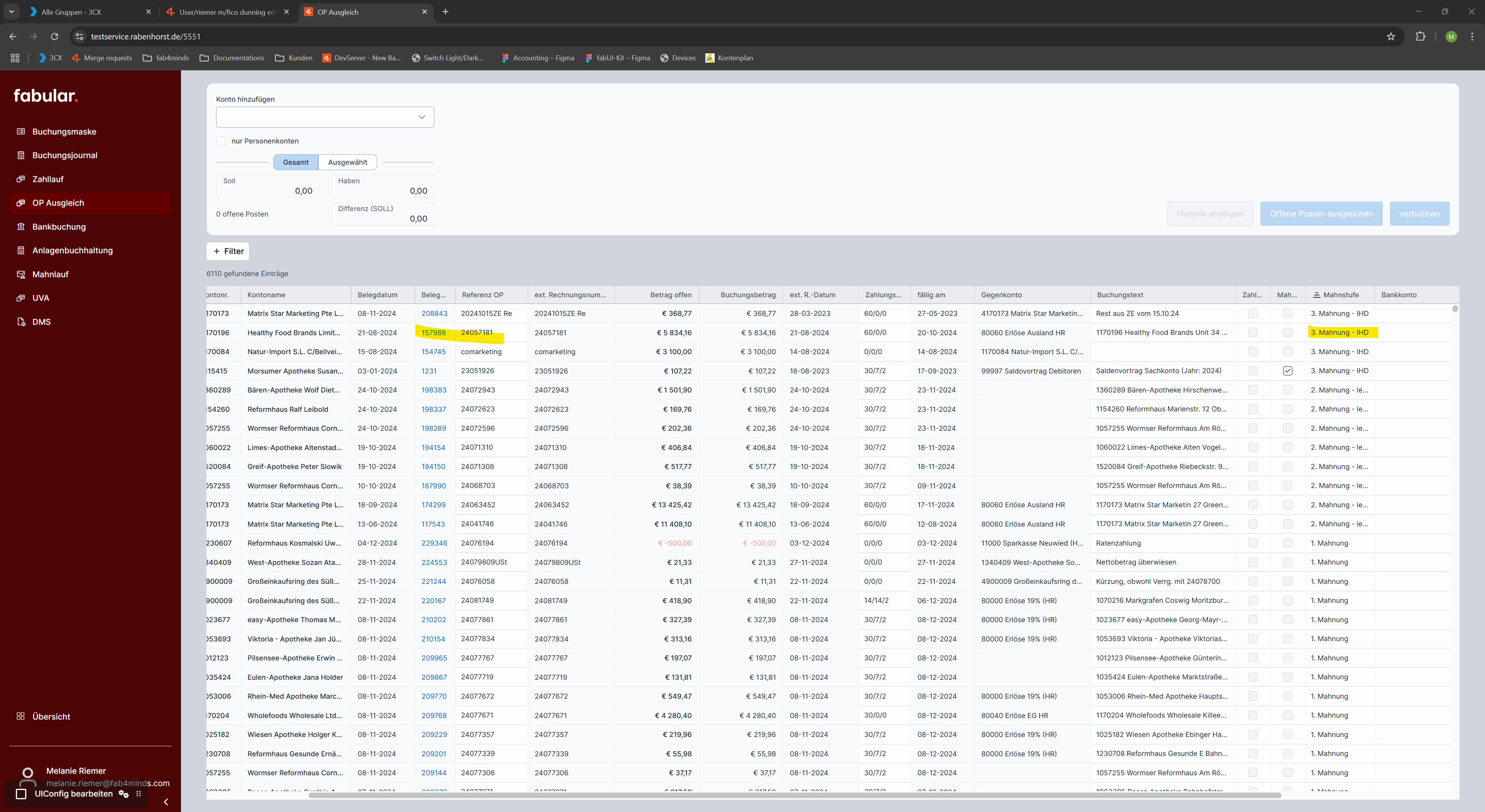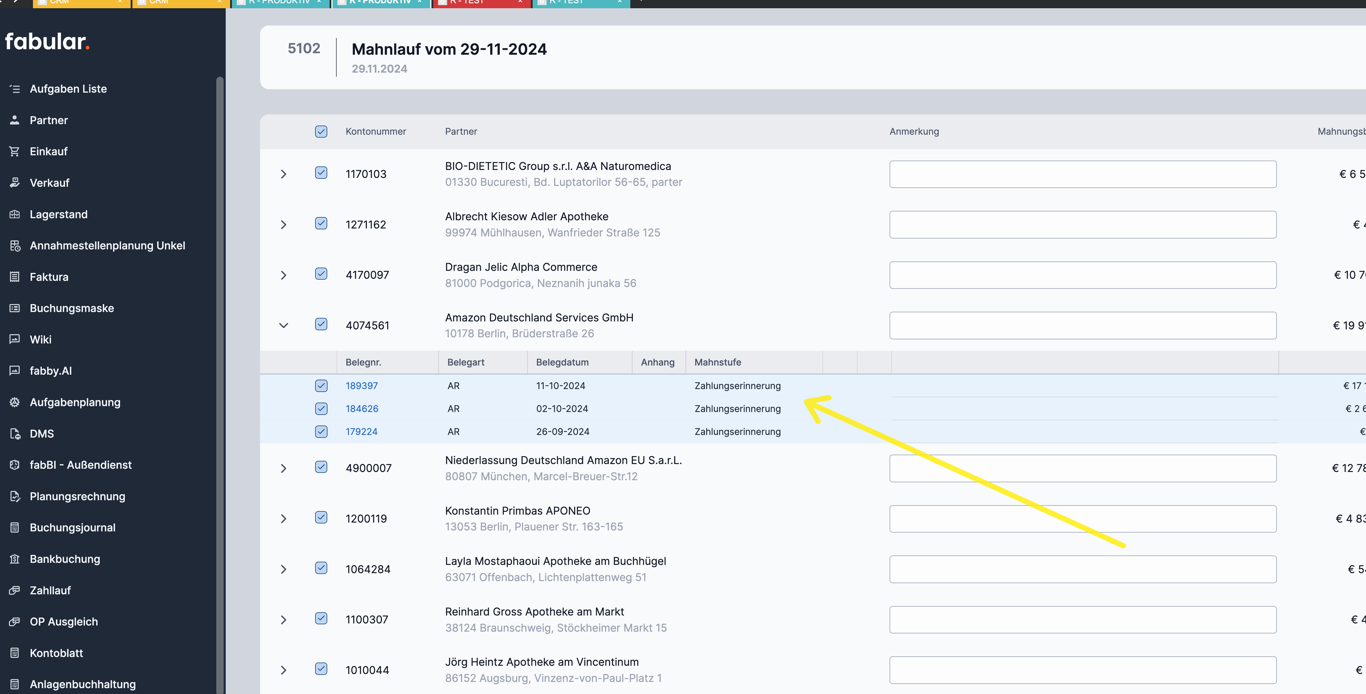 - Offenen Posten mit Mahnstufe auswählen