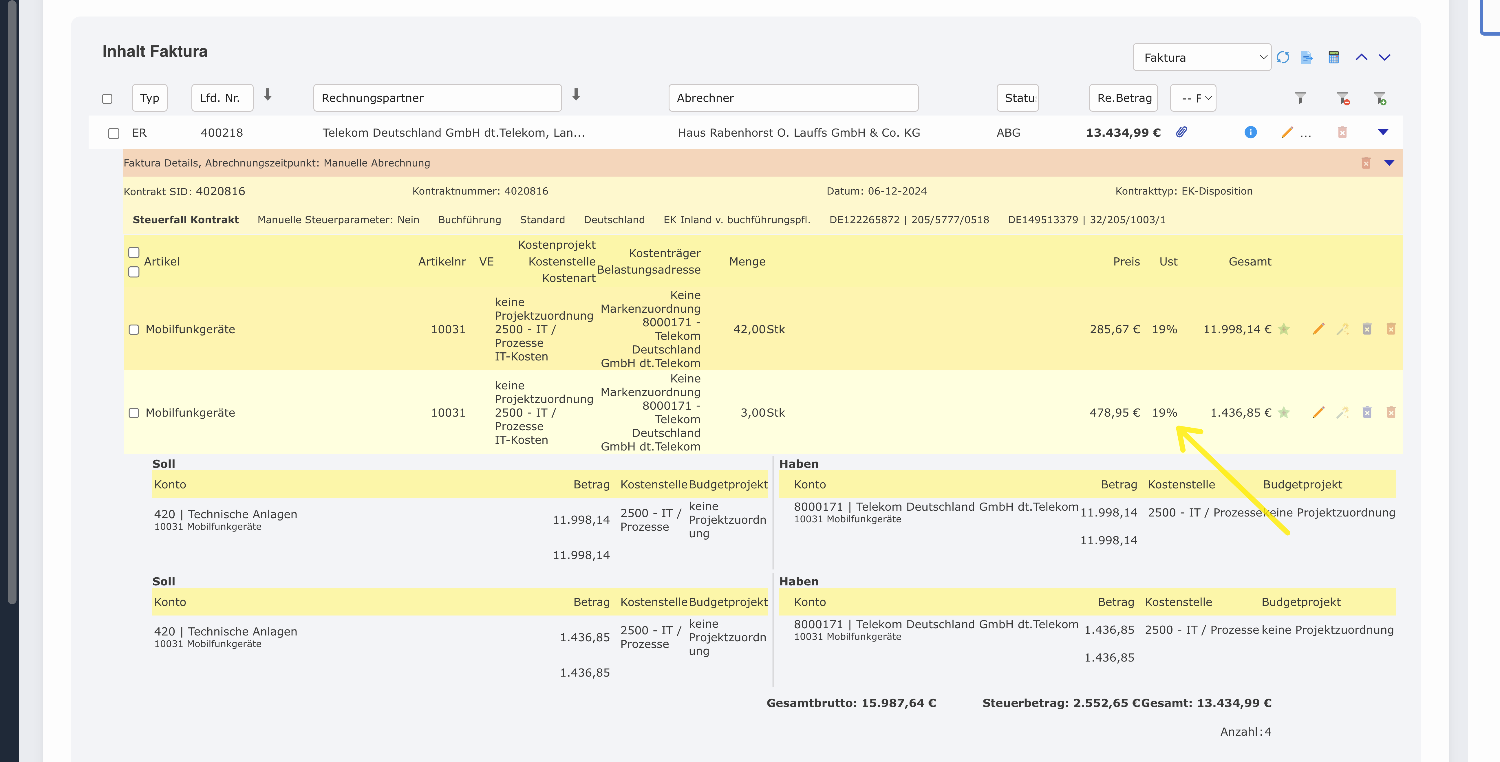 !!!!!!!!!!!!!!!!!!!!!!!!!!!!!!!!!!!!!!!!!! Netto Buchung auf Konto und Faktura wenn Gegenkonto gewählt