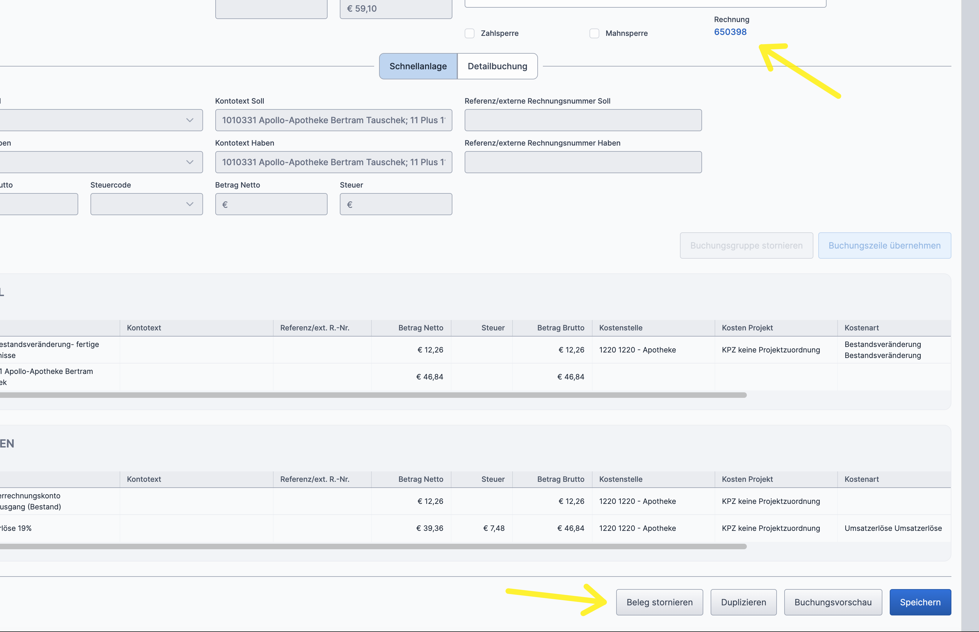 Wird eine Buchung geöffnet welche mit einer Invoice verknüpft ist darf diese nicht verändert und auch nicht storniert in der Buchhaltung werden.