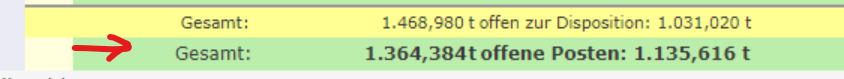 Es soll eine zweite Summenzeile inklusive der nicht abgeschlossenen Buchungen erweitert werden. Eine ähnliche Funktion gibt es auf der Chargen-Qualitätsinfo Seite mit der angezeigten Menge Lagerstand mit und ohne abgeschlossene Buchungen.