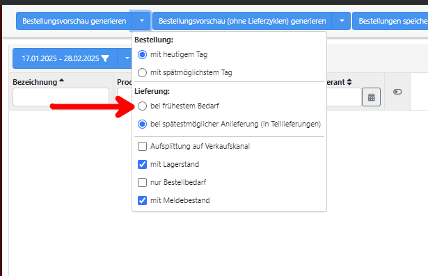 ACHTUNG: Wenn im Profil aber schon gespeichert ist dass \"bei spätestmöglicher Anlieferung (in Teillieferungen)\" ausgewählt ist, dann überschreibt das natürlich den Default Wert !!